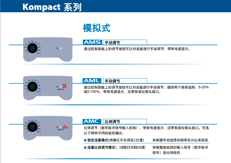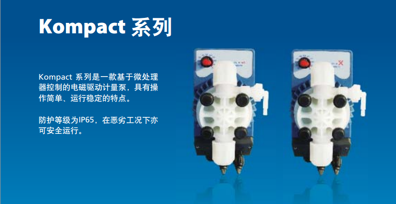 Kompact系列是一款基于微處理器控制的電磁驅動計量泵,具有操作簡單、運行穩定的特點。