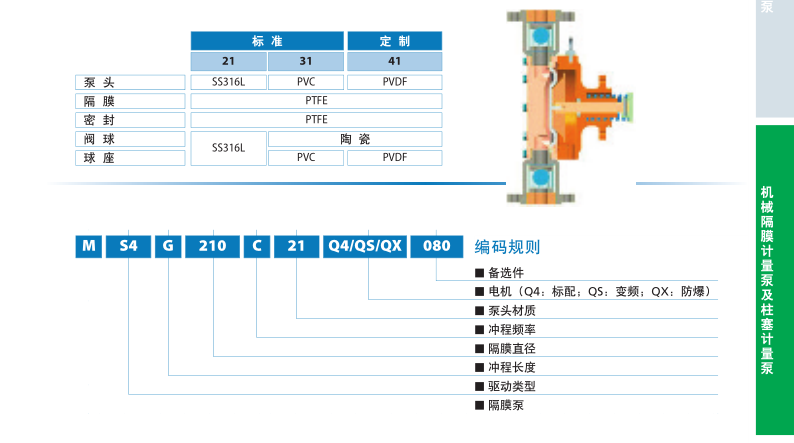 MS4系列泵是一種機械隔膜計量泵,具有彈簧復位機械裝置和鑄鐵外殼。